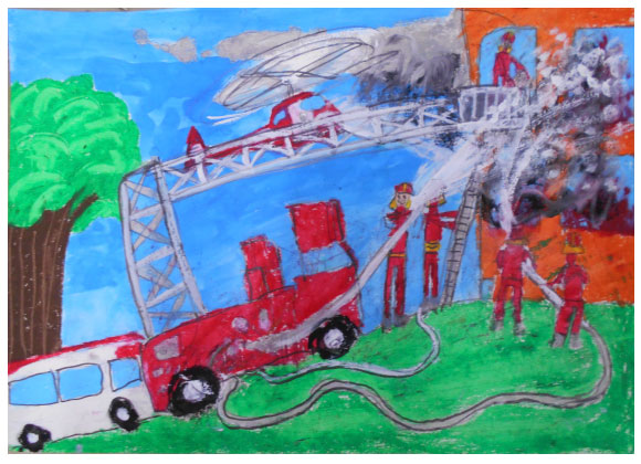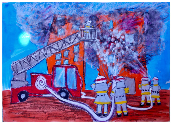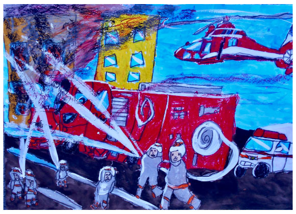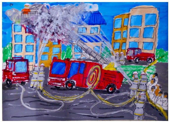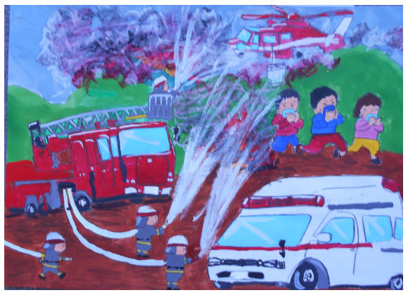 令和7年度 大阪市消防局『防火・防災の図画』コンクール 大阪市内-小学生の3,871点の応募作品中 90名の佳作が選ばれ、 当教室から8名の方々が入選されました。